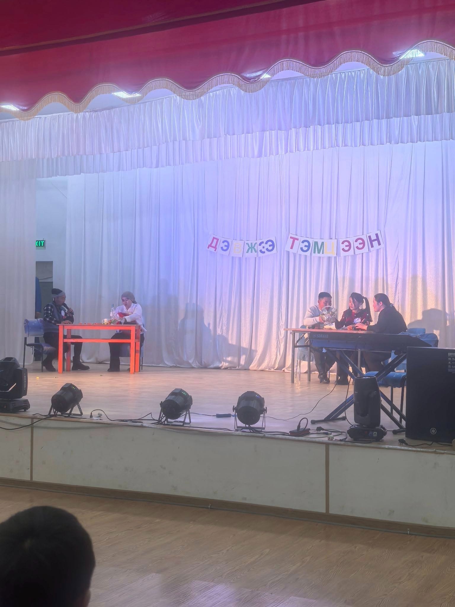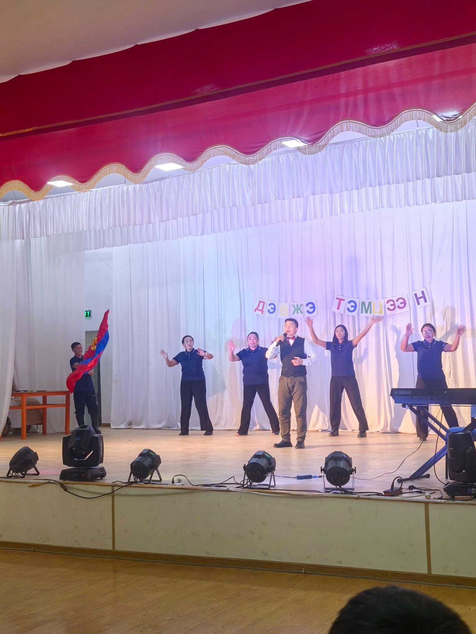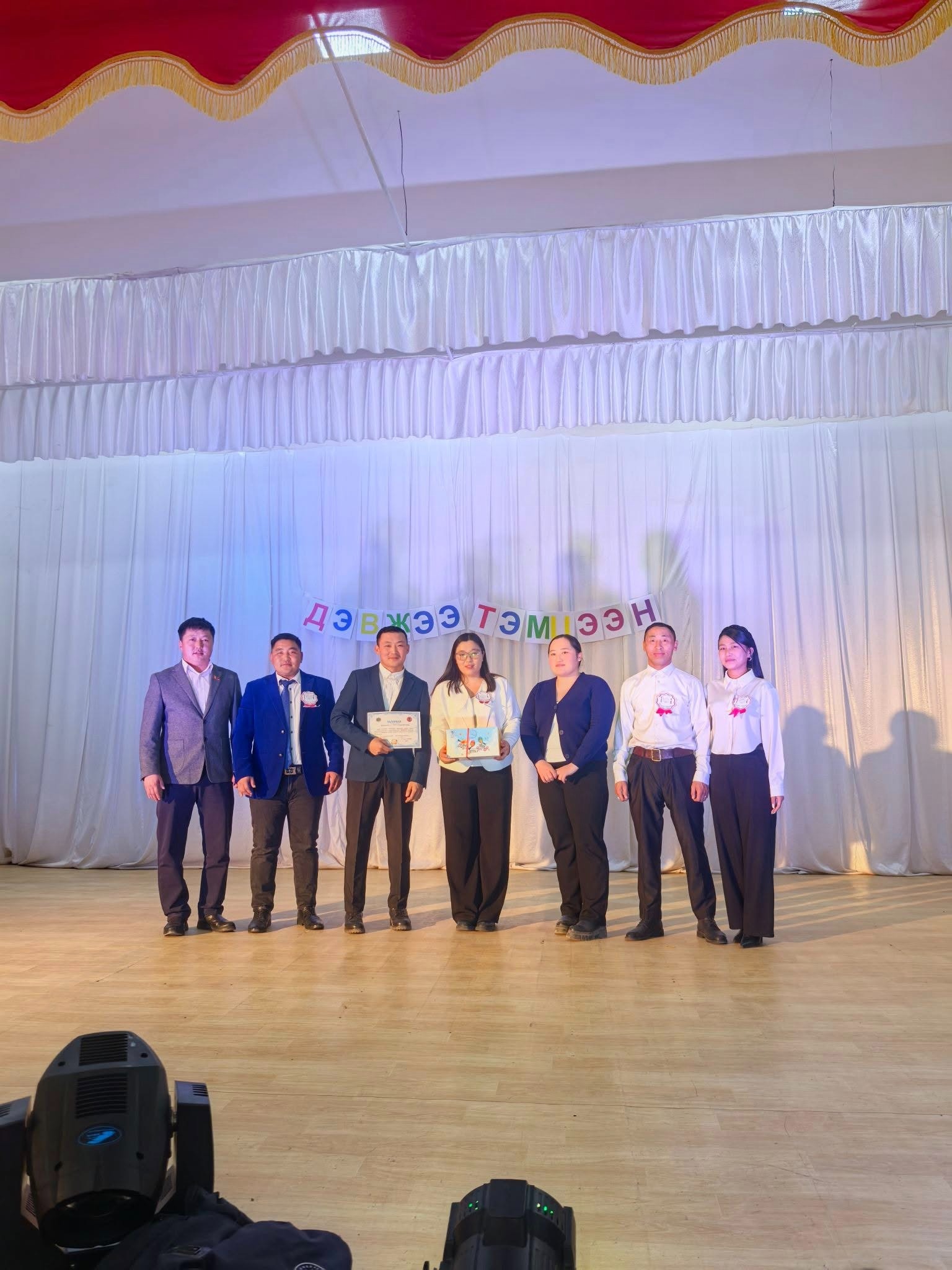 Сумын Гэмт Хэргээс Урьдчилан Сэргийлэх Ажлыг Зохицуулах Салбар Зөвлөлөөс төрийн байгууллагуудын дунд зохион байгуулсан "Бид хуулийн хүрээнд амьдардаг" сэдэвт ДЭВЖЭЭ тэмцээнд Сумын ЗДТГ, Эрүүл мэндийн төв, ЕБСургууль, Цэцэрлэг гэсэн 4 байгууллагын 24 алба хаагч оюун ухаан, авьяас, чадвараа дайчлан оролцсоноос :